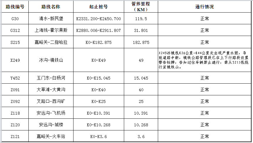 嘉峪关公路管理局管养公路路况信息(2017年12月29日)